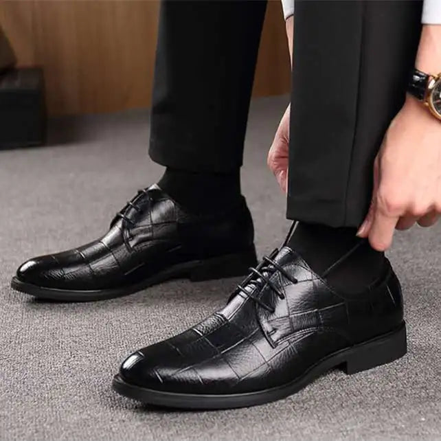 היכנסו לתחכום ונוחות עם נעלי העסקים הבריטיות שלנו עם שרוכים בסגנון שחור קוריאני קז'ואל ונושמות.