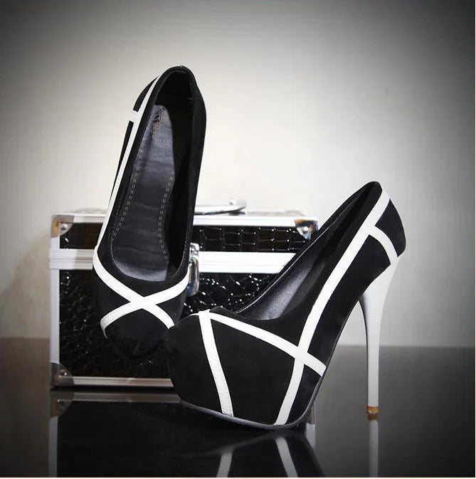 היכנסו לסטייל וצרו אמירה נועזת עם נעלי העקב הגבוהות המדהימות שלנו. נעליים אלו, המעוצבות עם דוגמת פסים ייחודית עם חוסם צבעים , מושלמות עבור אלו שרוצות להתבלט מכל קהל. חומר הגפה עשוי מזמש יוקרתי, המציע גם אלגנטיות וגם נוחות, בעוד שצורת האצבע המחודדת מוסיפה נגיעה של תחכום לתלבושת שלכם.