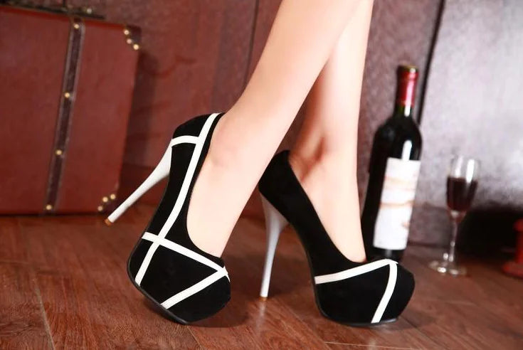 נעלי עקב גבוהות עם פסים בצבעים שונים