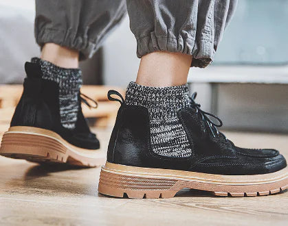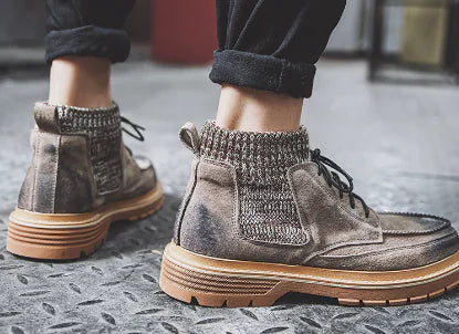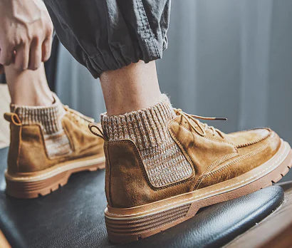Step up your footwear game with our stunning Martin Boots, designed for the modern man who values both style and comfort. These high-top military boots blend classic British aesthetics with contemporary fashion, ensuring you make a statement wherever you go. Crafted from premium pigskin leather, these boots offer a luxurious feel while providing durability and support. The rubber sole ensures excellent traction, making them perfect for any terrain, whether you're navigating city streets or venturing into the great outdoors. With a medium heel height of 3-5 CM and a round toe shape, our Martin Boots promise not just style but also comfort for all-day wear. The frosted processing method enhances the leather, giving it a unique texture that stands out. Available in a variety of colors including yellow brown velvet, apricot plush, and black velvet, you can choose the perfect pair to match your personality and wardrobe. Each pair comes in multiple sizes, ensuring a great fit for everyone. Enhance your shoe collection with these versatile boots that can effortlessly transition from casual outings to more formal occasions. Pair them with your favorite jeans or trousers for a chic look that exudes confidence and sophistication. Don't miss out on this essential addition to your wardrobe. Explore our collection of Martin Boots today and step out in style!