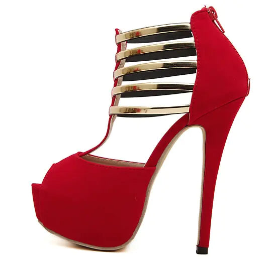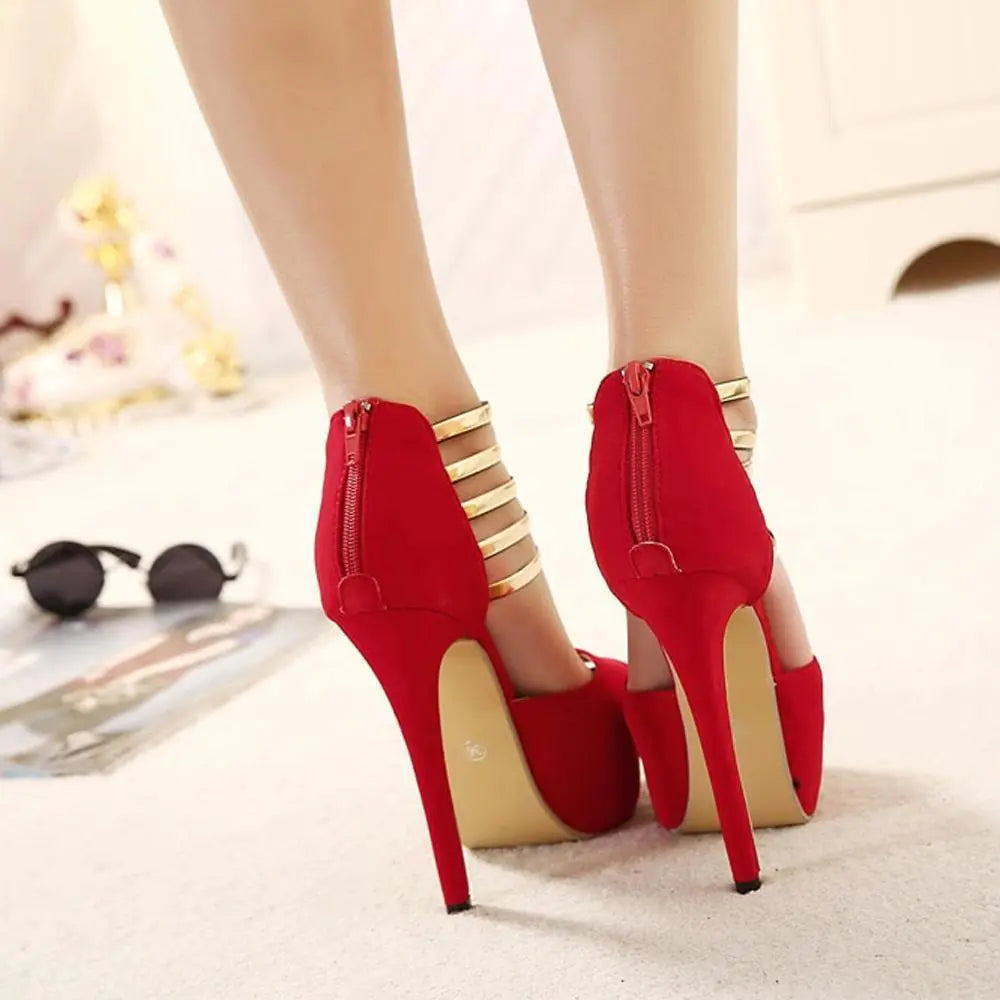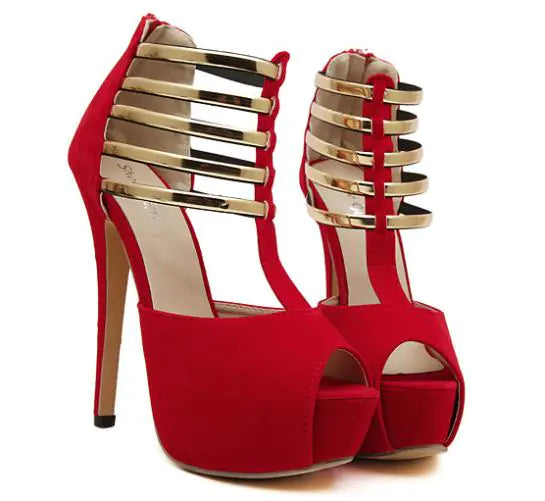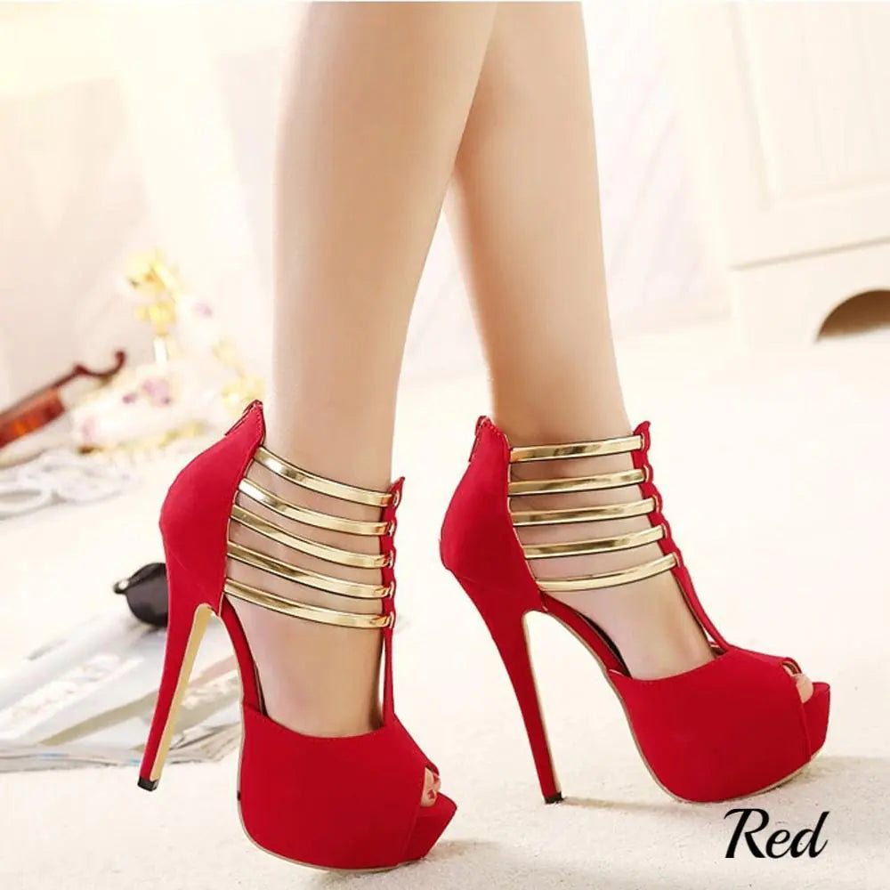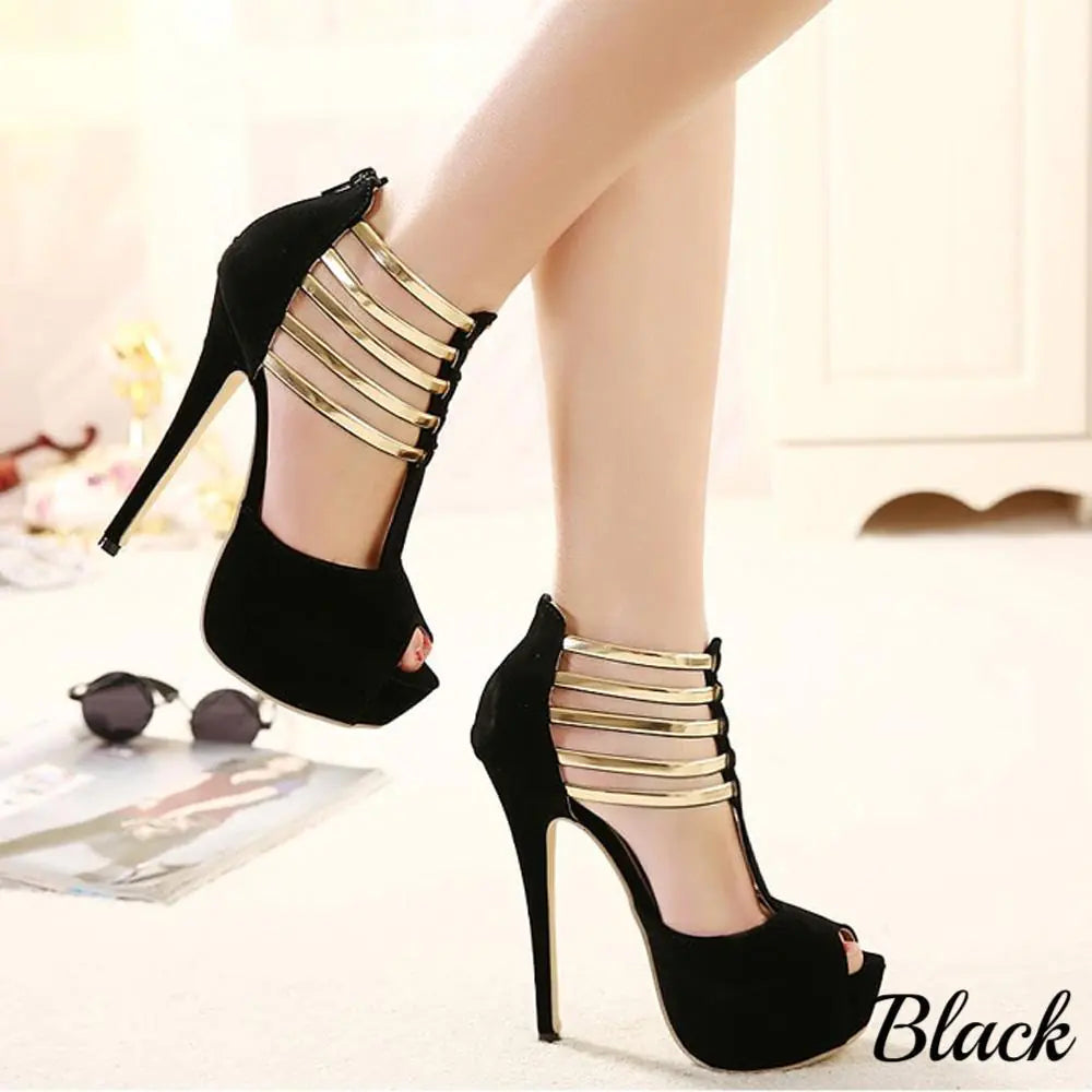 נעלי עקב גבוהות חדשות לנשים בקיץ עם קישוט מטאלי