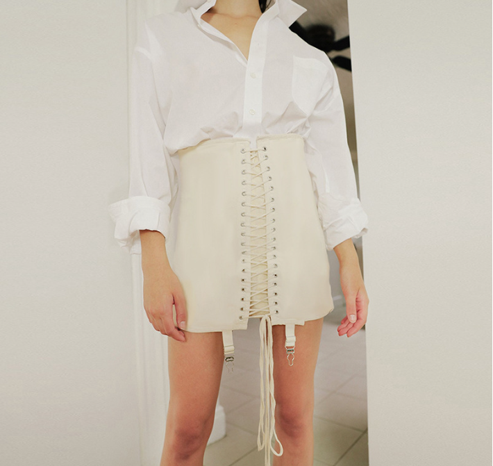 Belted Bodycon Midi Skirt (Half-Length Skirt)