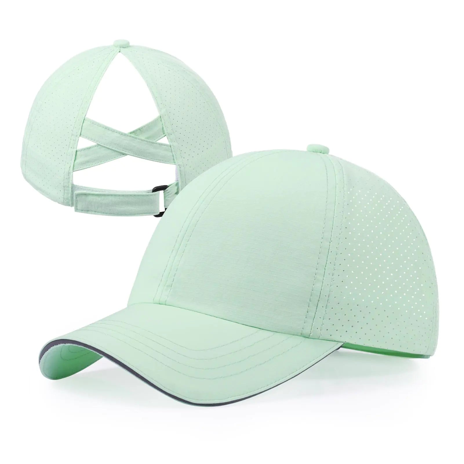 Girls Baseball Hat Criss Cross Ponytail Hats for Girls Adjustable Kids Baseball Cap Ponycap Outdoor Summer Sports Hats Age 7-12 Mint Green