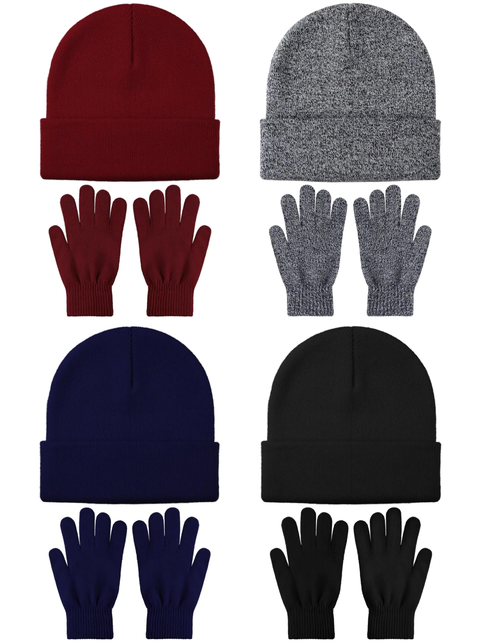 [COMPLETE WINTER SET: Each package includes a matching set of warm beanie hats and winter gloves providing a comprehensive solution for winter warmth HIGH-QUALITY MATERIALS: Made from soft and stretchy acrylic fabric these hat and gloves sets offer both comfort and durability keeping you warm and cozy throughout the cold months ONE SIZE FITS MOST: The stretchy material of the knit gloves and beanies ensures a comfortable fit for a wide range of head sizes and hand shapes making these sets versatile and suitable for most adults LIGHT YET COZY: Crafted from lightweight insulating materials that efficiently retain heat these accessories offer excellent warmth great for outdoor activities and daily commutes ELASTIC CUFFS: The beanies and gloves feature elastic cuffs to provide a snug fit that keeps the cold out and ensures that they stay securely in place during all activities]