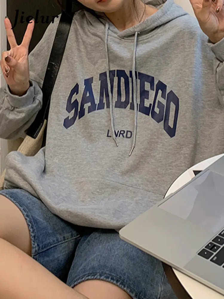 Jielur Autumn Contrast Color Slim Hoodies for Women