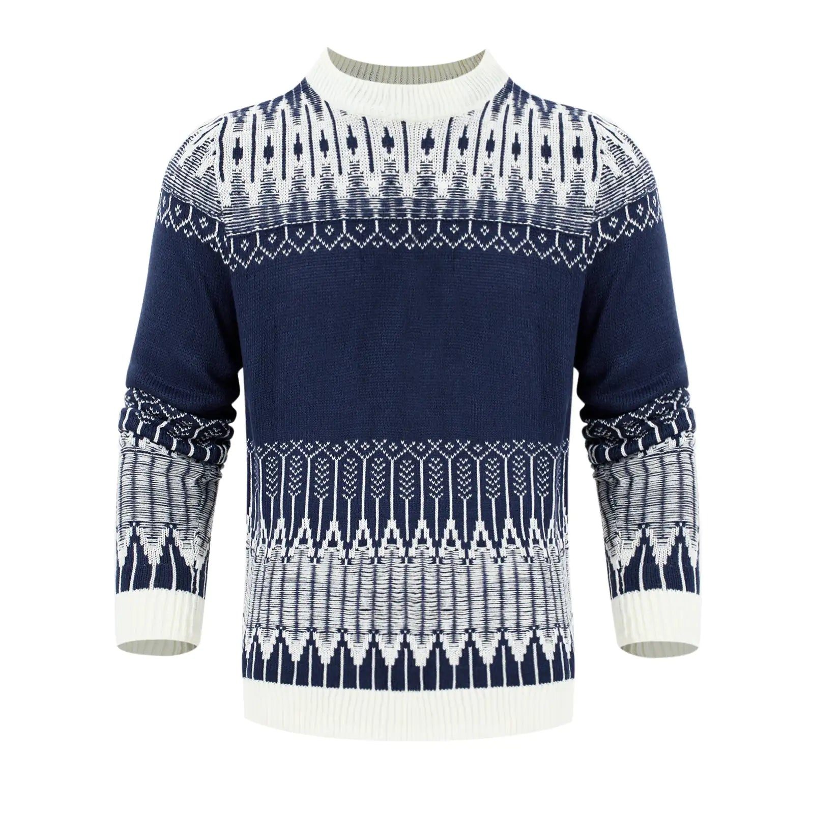 Men's Crewneck Pullover Sweater Unisex Fair Isle Long Sleeve Knitted Sweater