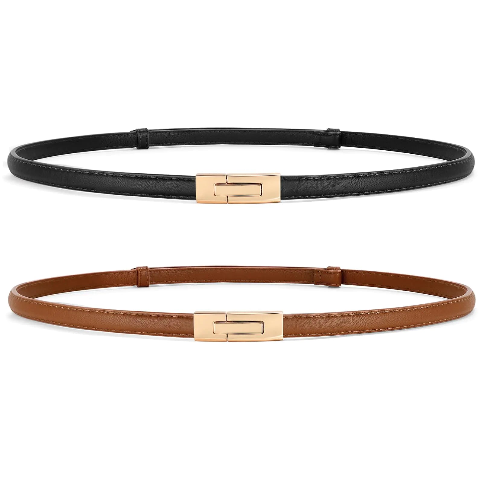 SUOSDEY 2 Pack Womens Leather Skinny Belts for Dress Adjustable Vintage Thin Waist Belt for Ladies0.6" Width