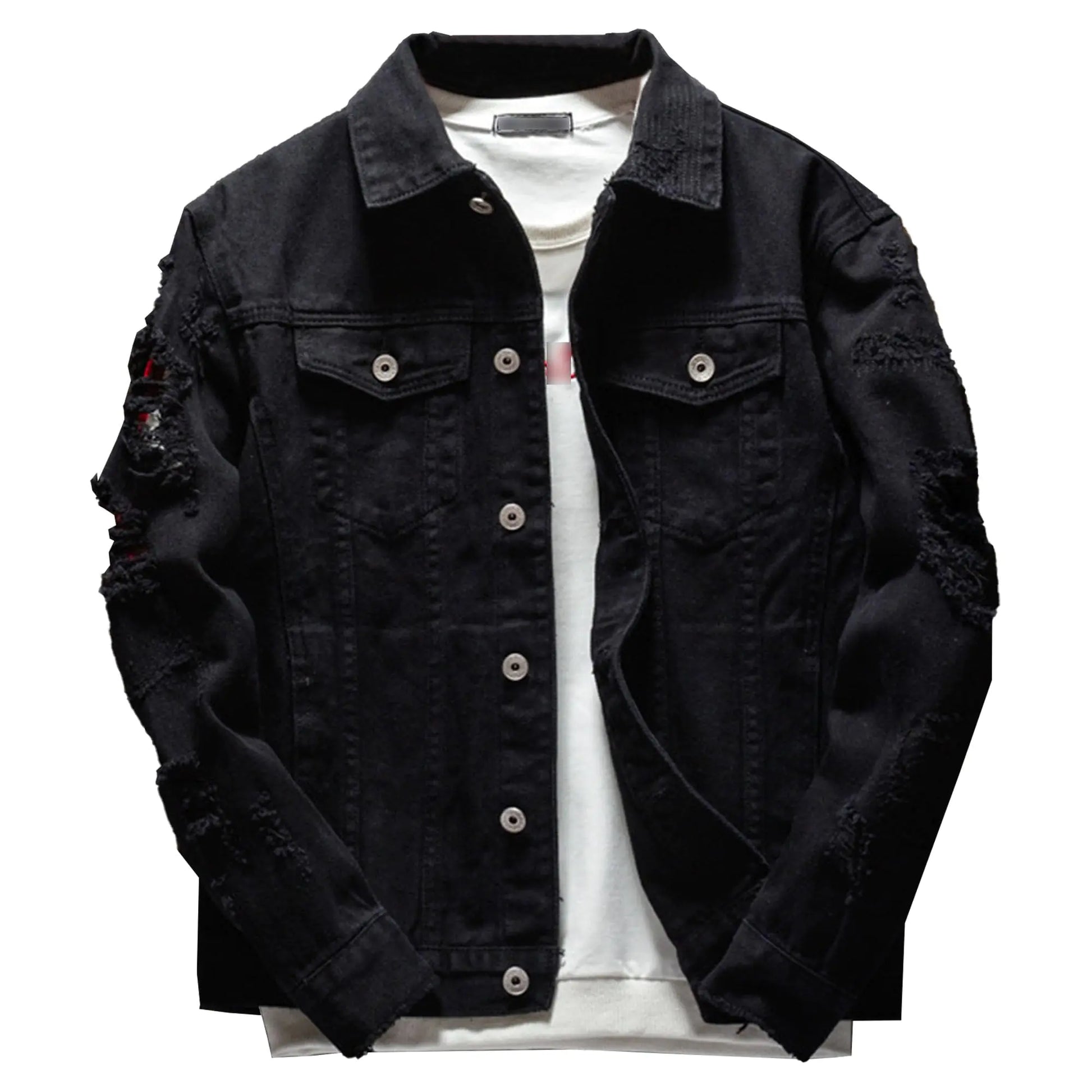 SWJGLITTR Men Button Distressed Denim Jacket Ripped Slim Trucker Jean Jackets Casual Cowboy Cut Biker Coats (LargeBlack)