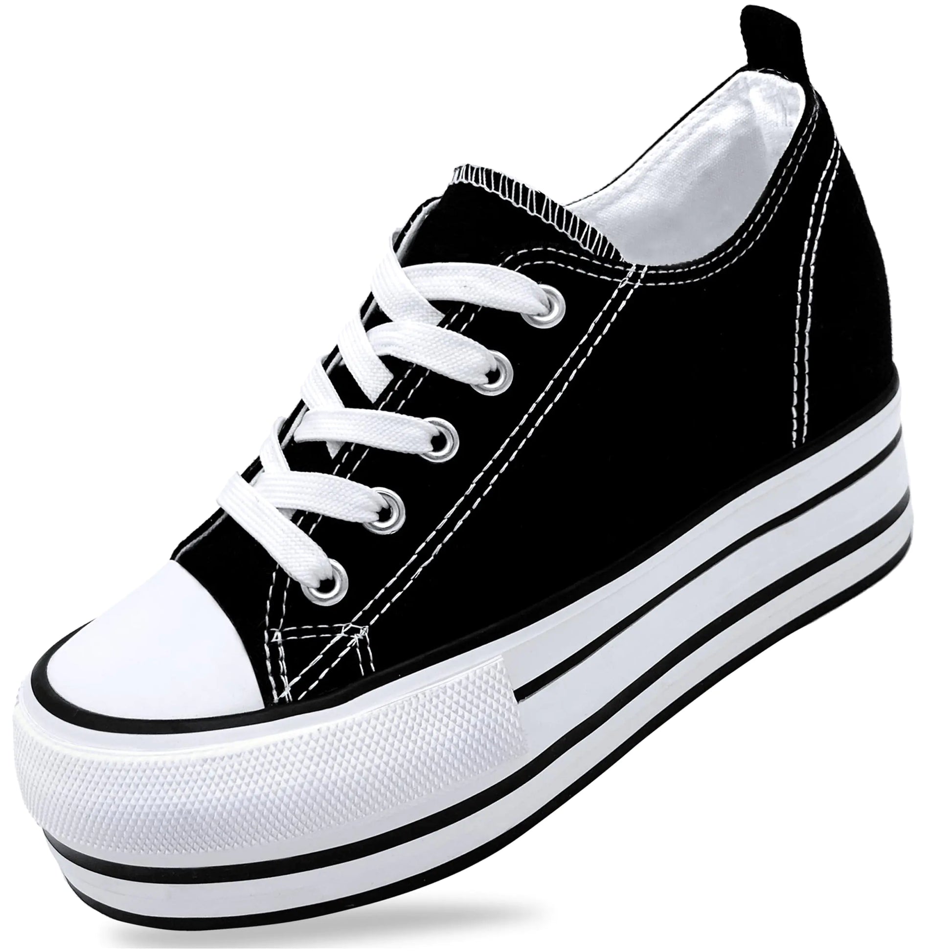 DescriptionWomens Platform Sneakers Hidden Wedge 3 Inches Height Increase Canvas Sneakers High Heel Fashion Walking Shoes for Women and Girls