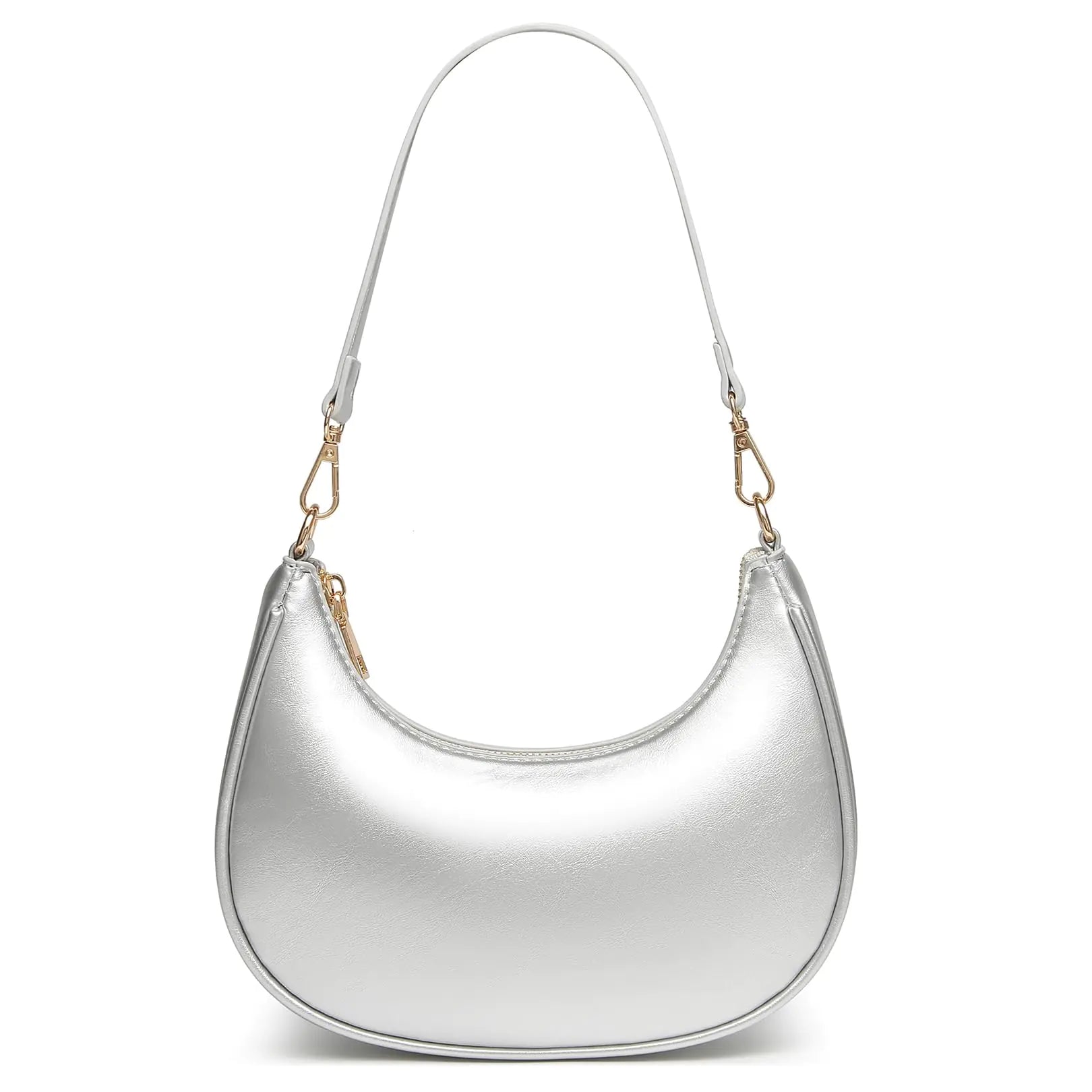 WuliTown Shoulder Bags for Women Cute Hobo Tote Handbag Mini Clutch Purse with Zipper Closure (Silver)